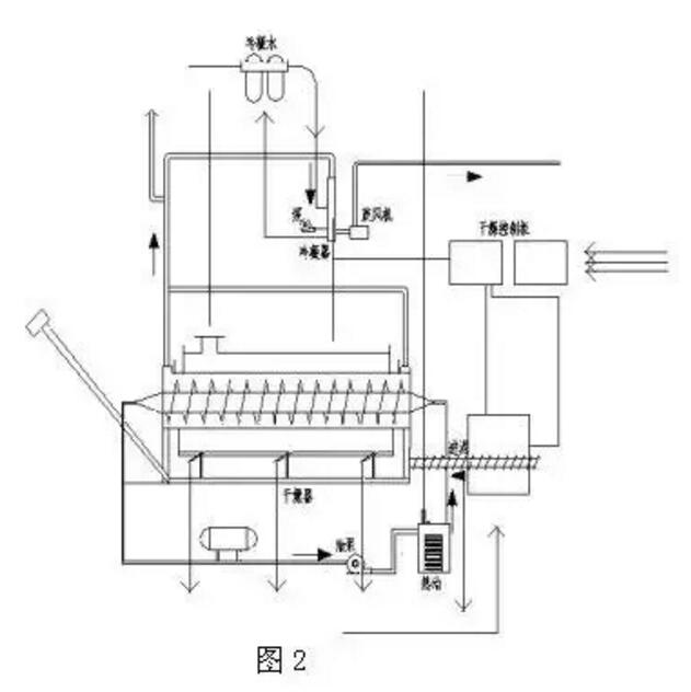 如圖2是濕污泥直接進料、間接加熱轉鼓干化系統工藝流程圖。