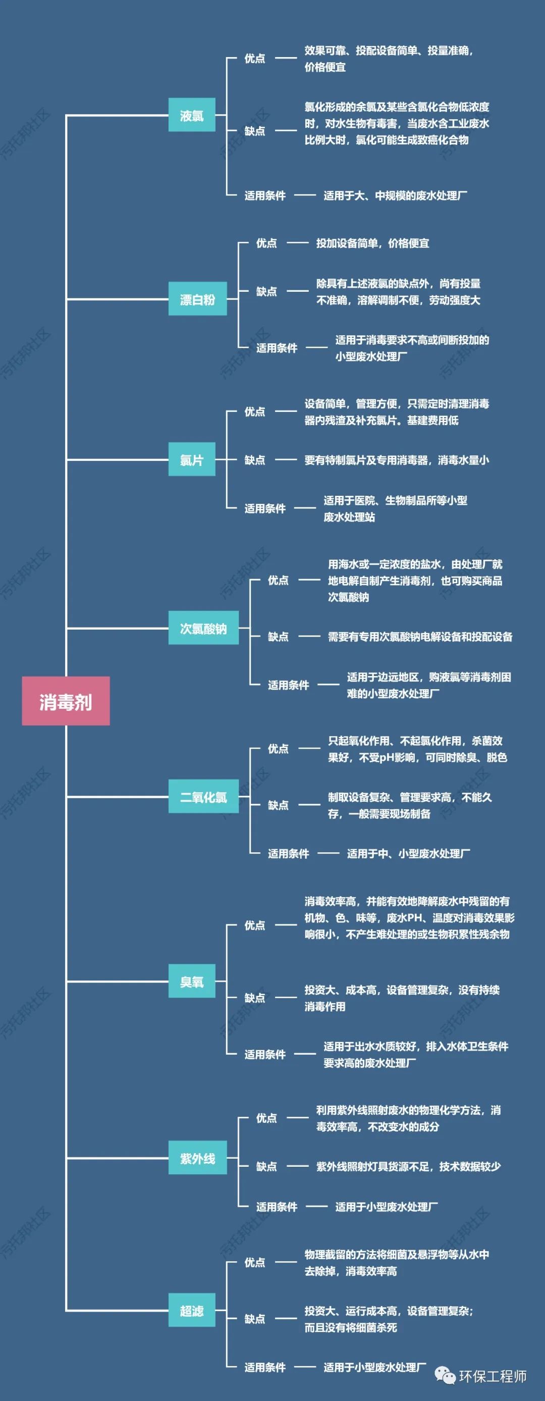 各種消毒劑的優(yōu)缺點和適用條件見思維導(dǎo)圖。參考此圖,可以初步確定應(yīng)該使用的消毒劑。